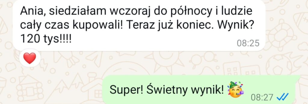 W ciągu 5 lat zrealizowałam wiele kampanii sprzedażowych kursów, osiągając dla klientów niejednokrotnie wynik przekraczający 130 tys. zł z jednej kampanii.