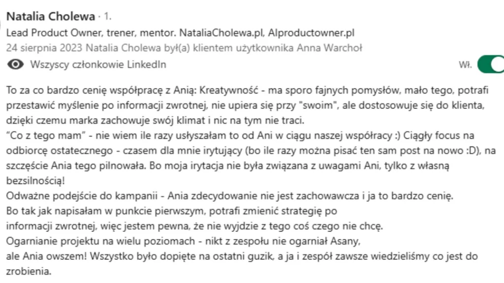 Co o współpracy ze mną mówią inni: